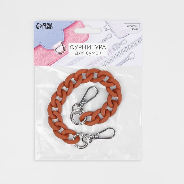 Цепочка для сумки, с карабинами, пластиковая, 23 × 17 мм, 30 см, цвет терракотовый/серебряный