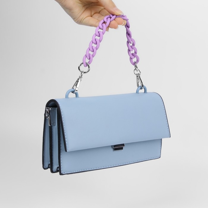 Цепочка для сумки, с карабинами, пластиковая, 23 × 17 мм, 30 см, цвет сиреневый/серебряный