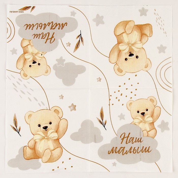 Салфетки бумажные 25*25см "Мишка" (набор 20 шт)