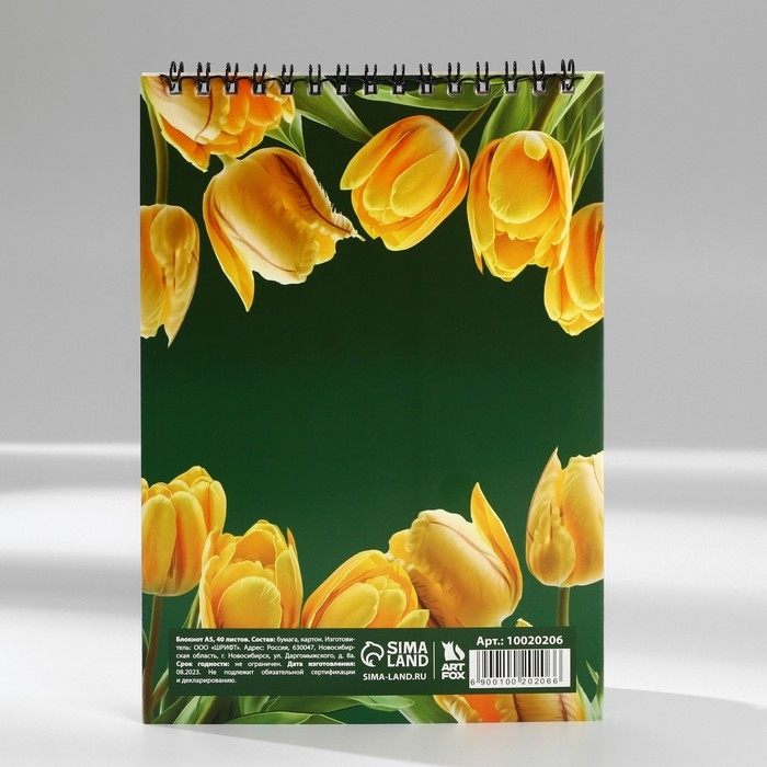 Блокнот А5,40 л на гребне, обложка картон «С 8 Марта»
