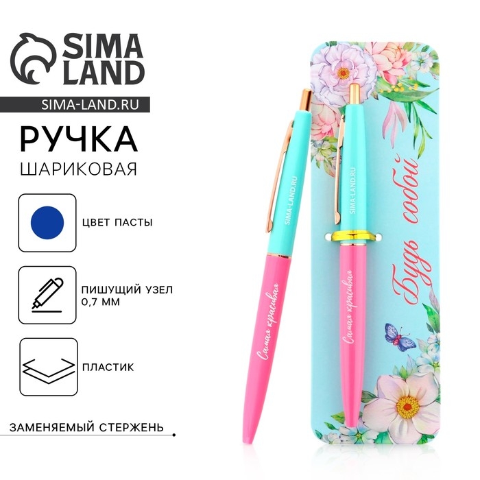 Ручка шариковая синяя паста автоматическая 0.7 мм «Будь собой» пластик