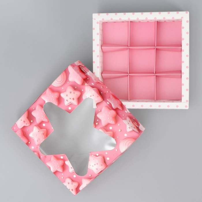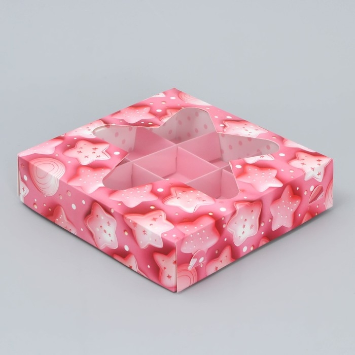 Коробка для конфет, кондитерская упаковка, 9 ячеек, «Сладости», 14.7 х 14.7 х 3.5 см