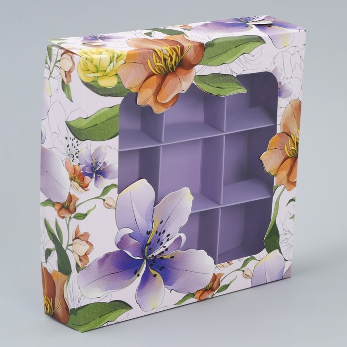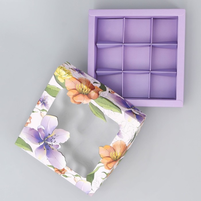Коробка для конфет, кондитерская упаковка, 9 ячеек, «Нежность внутри», 14.7 х 14.7 х 3.5 см