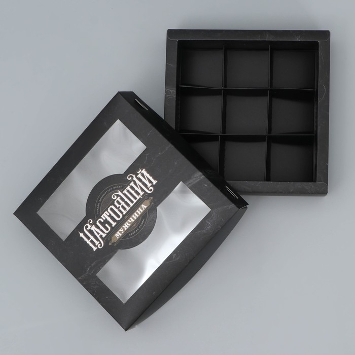 Коробка для конфет, кондитерская упаковка, 9 ячеек, «Настоящий», 14.7 х 14.7 х 3.5 см