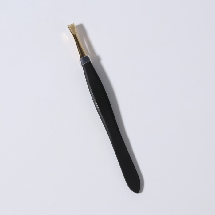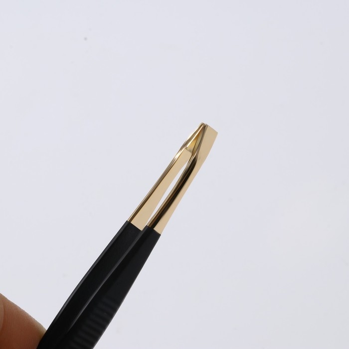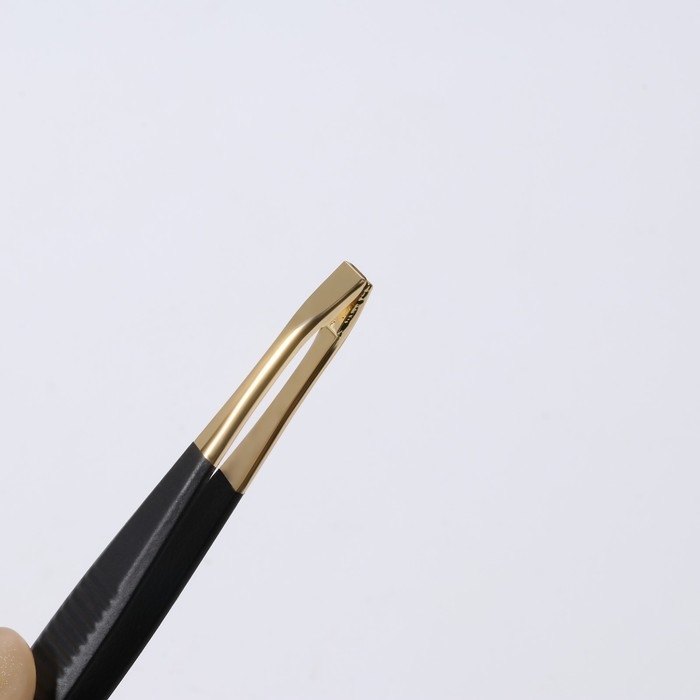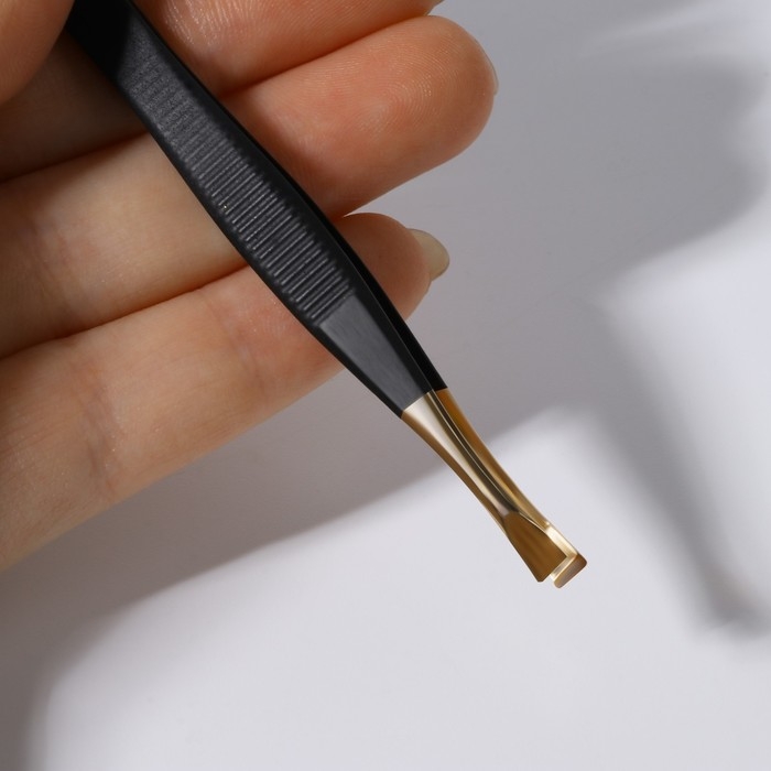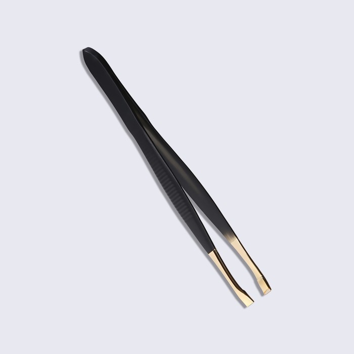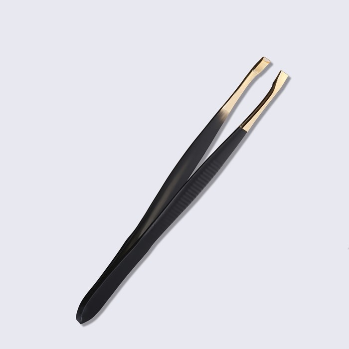 Пинцет прямой, узкий, 9 см, цвет чёрный/золотистый