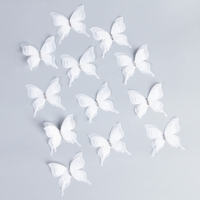 Декор для творчества «Бабочка», трёхслойный, набор 12 шт., размер 1 шт. — 5 × 4,5 см, цвет белый
