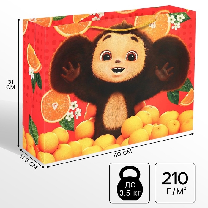 Пакет подарочный, 40х31х11.5 см, упаковка, Чебурашка