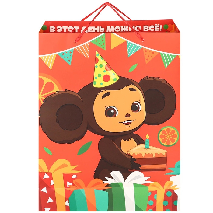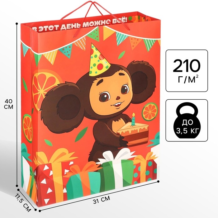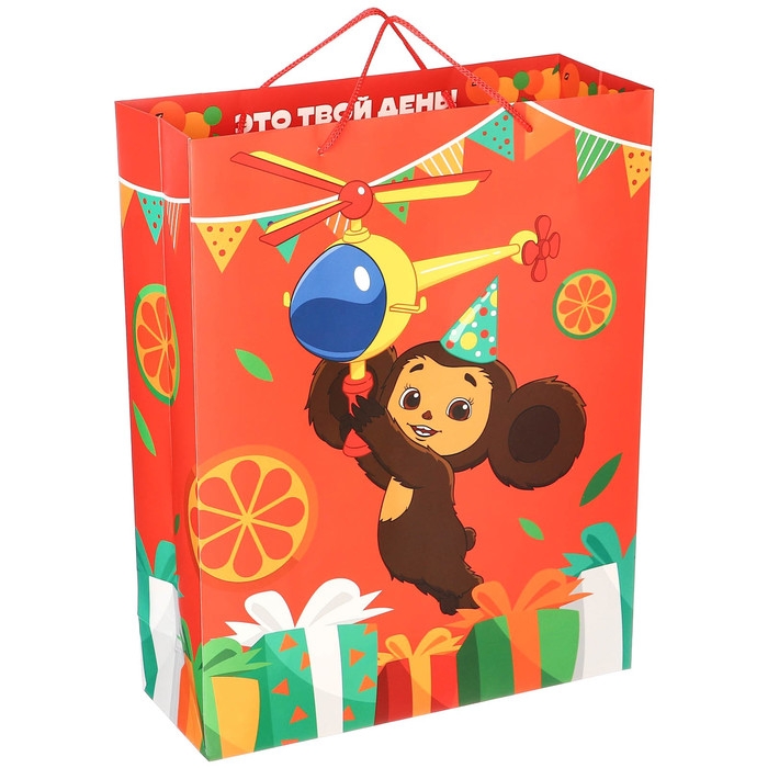 Пакет подарочный, 31х40х11.5 см, упаковка, Чебурашка