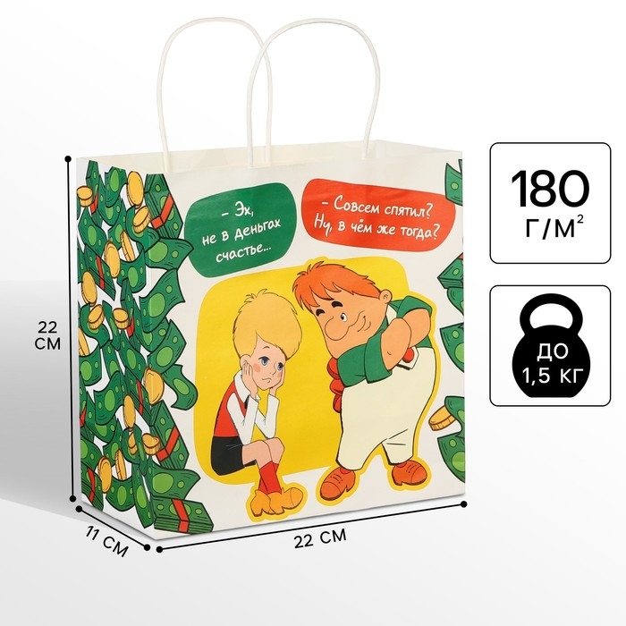Пакет подарочный, 22х22х11 см, крафт, упаковка, Малыш и Карлсон