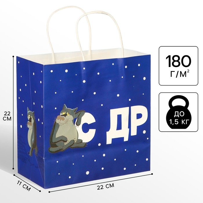 Пакет подарочный "С Др тебя если чо" 22х22х11 см, крафт, упаковка, Жил-был Пес