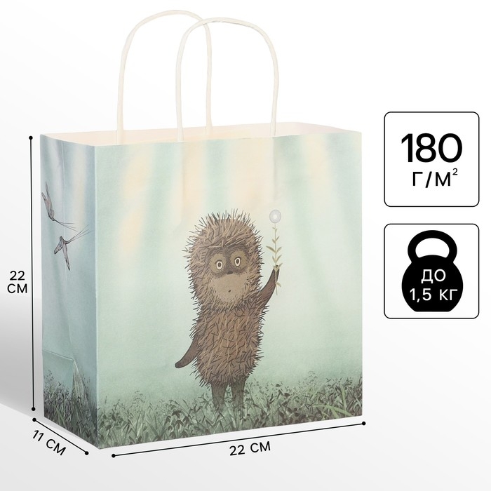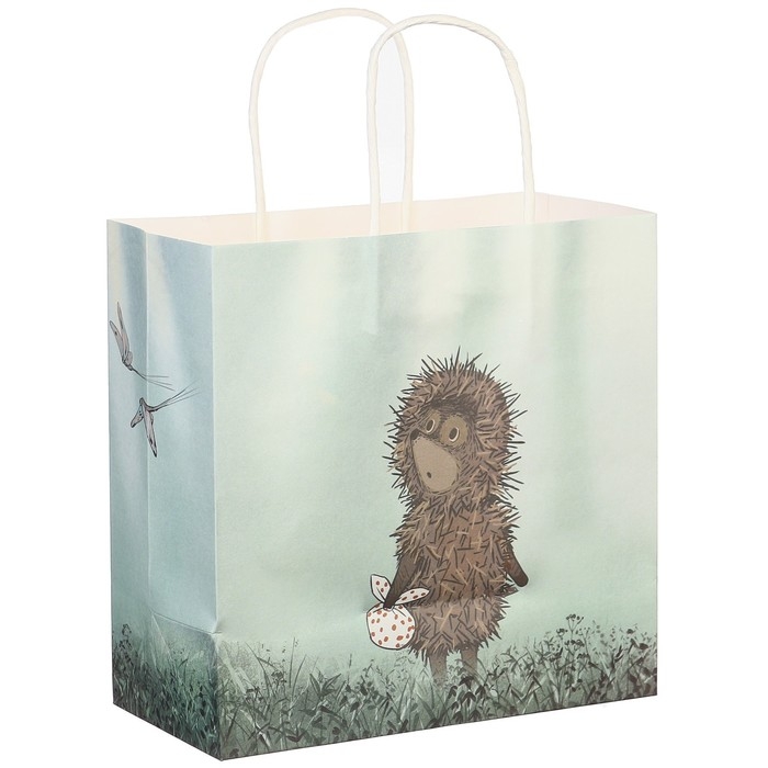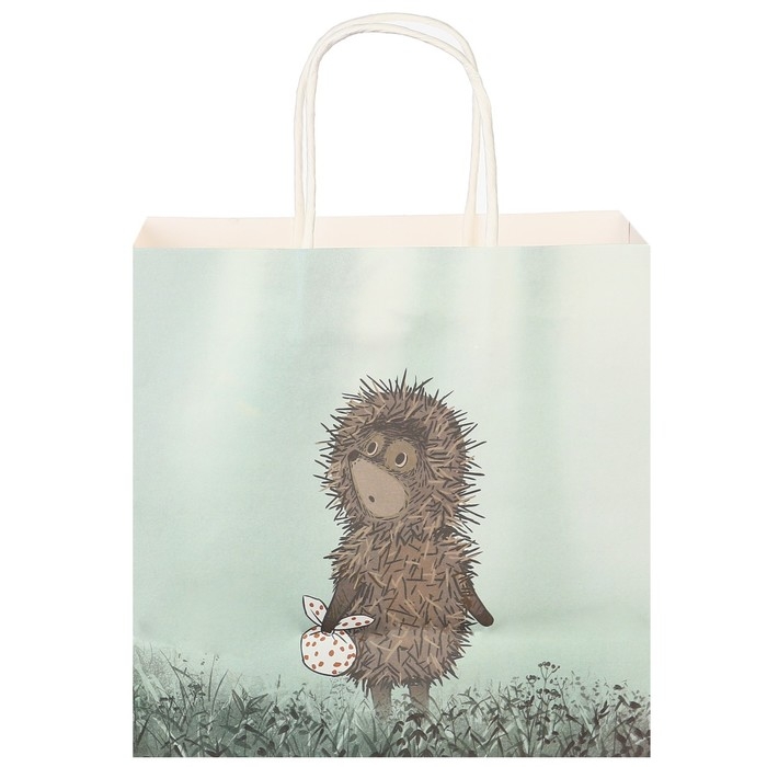 Пакет подарочный, 22х22х11 см, крафт, упаковка, Ёжик в тумане