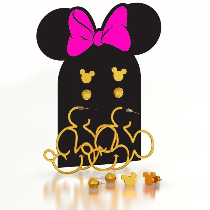 Серьги из металла, 3 пары, бижутерия, Минни Маус
