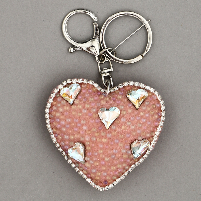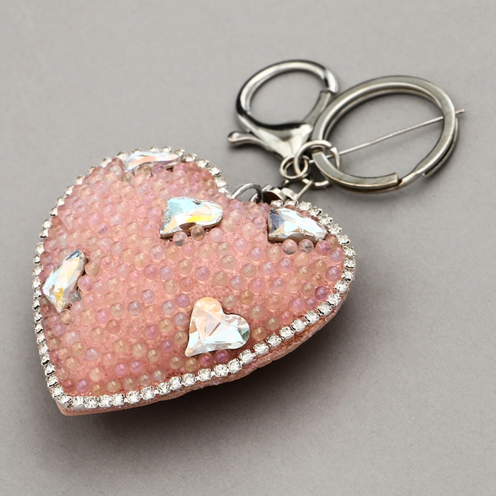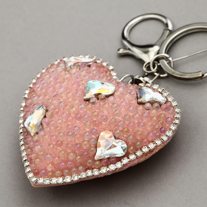 Мягкая игрушка «Объемное сердце» со стразами, на брелоке, 7 см, цвет розовый