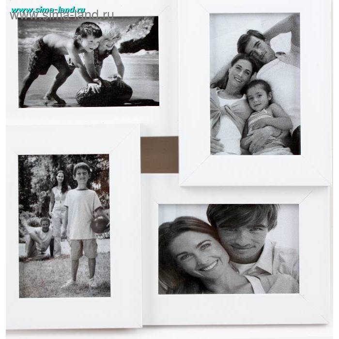 Фоторамка пластик на 4 фото 10х15 см "Аврора" белая 31,5х31,5 см