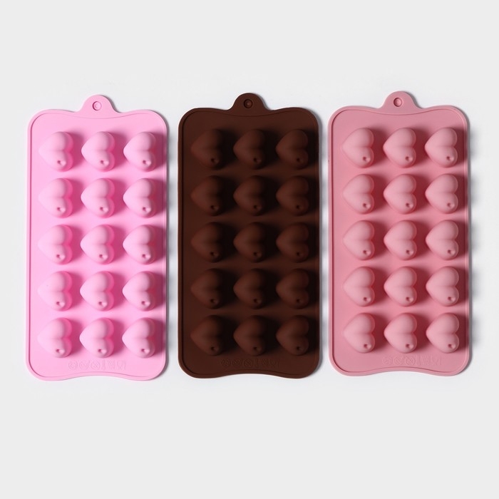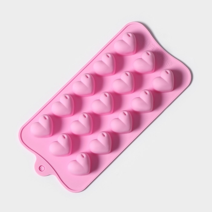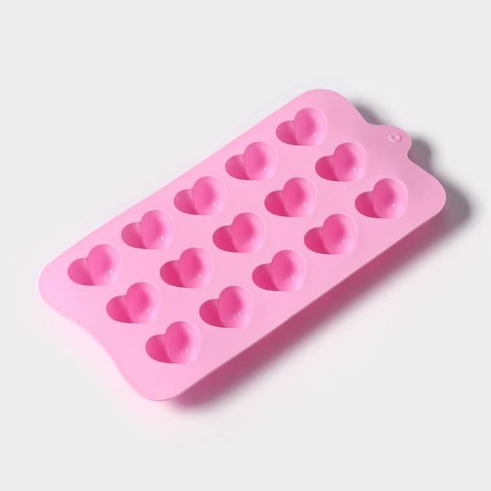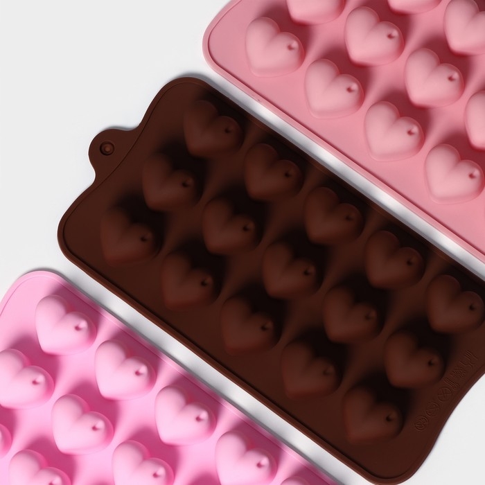 Форма для конфет и шоколада Доляна «Сердечко», силикон, 21×10 см, 15 ячеек (2,7×2,8 см), цвет МИКС