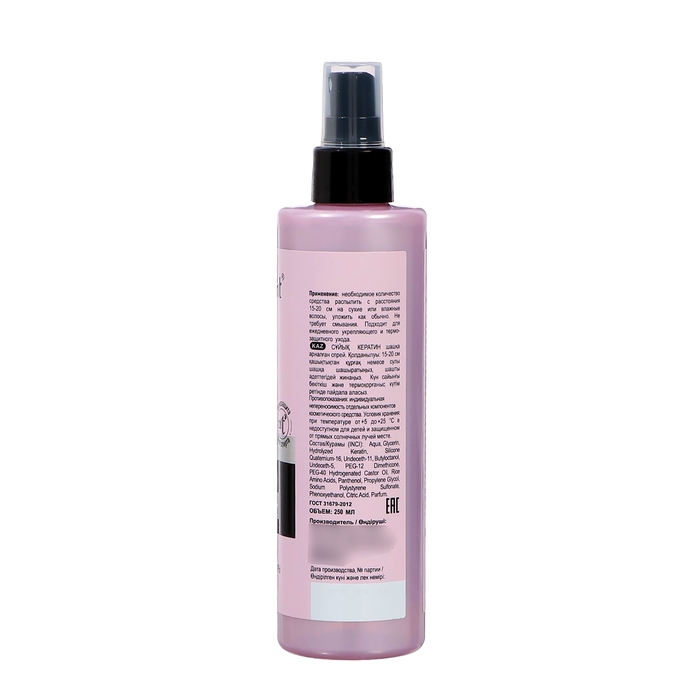 Способ применения: необходимое количество средства распылить с расстояния 15-20 см на сухие или влажные волосы, уложить как обычно. Не требует смывания. Подходит для ежедневного укрепляющего и термозащитного ухода.