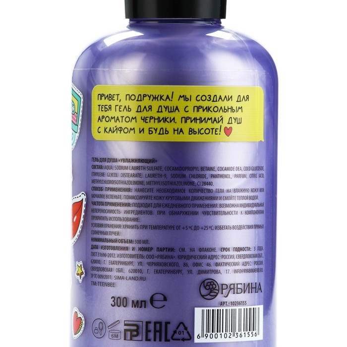 Гель для душа, увлажнение, 300 мл, аромат черники, TeenBee