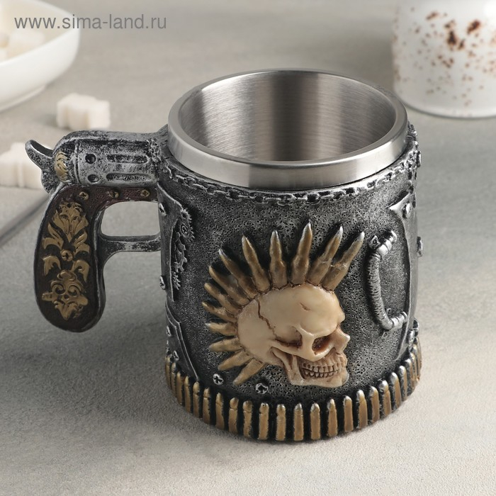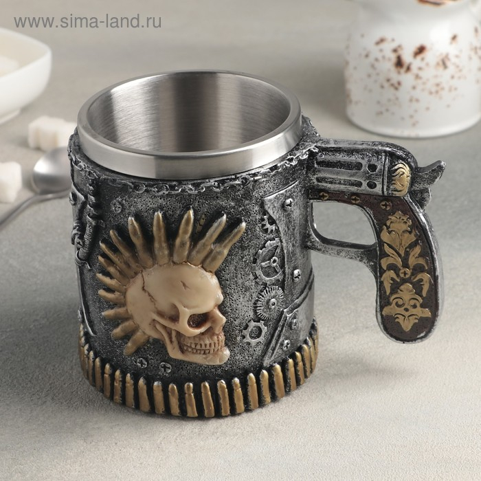 Кружка из нержавеющей стали «Панк.Череп. Хэллоуин», 400 мл, цвет серебристый