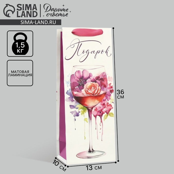 Пакет подарочный под бутылку, упаковка, «Бокал», 36 х 13 х 10 см