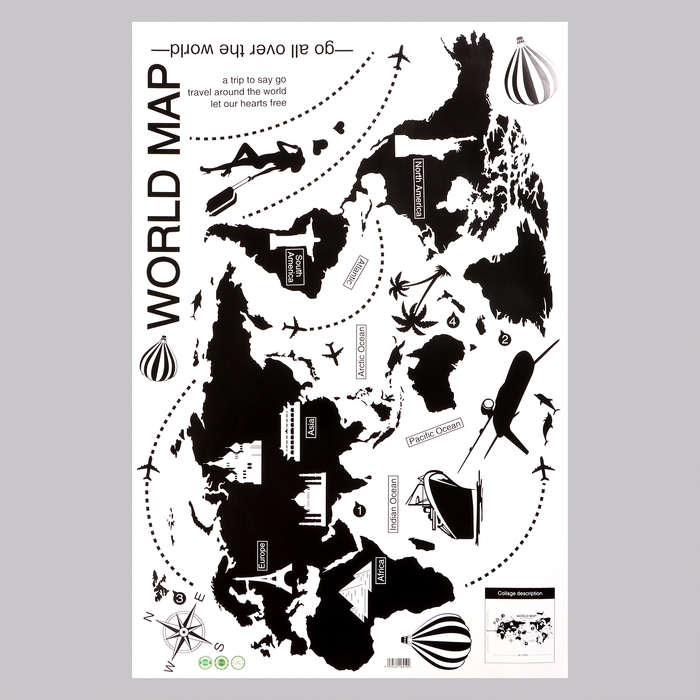 Наклейка 3Д интерьерная Карта мира 90*60см