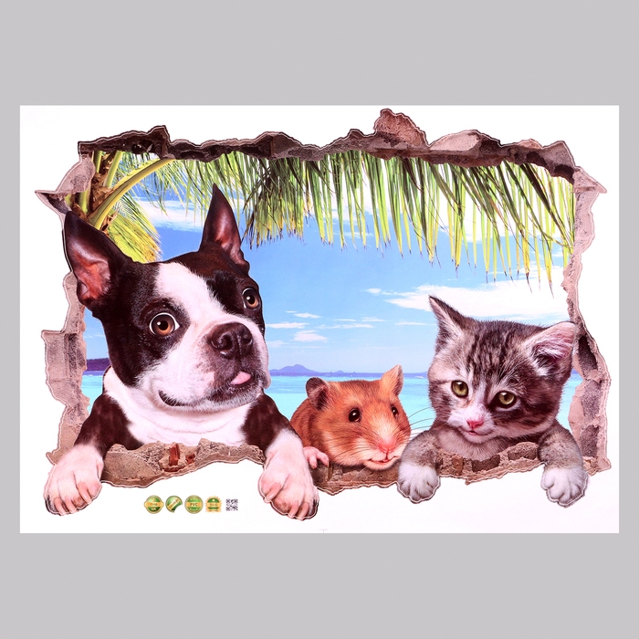 Наклейка 3Д интерьерная Домашние питомцы 70*50см