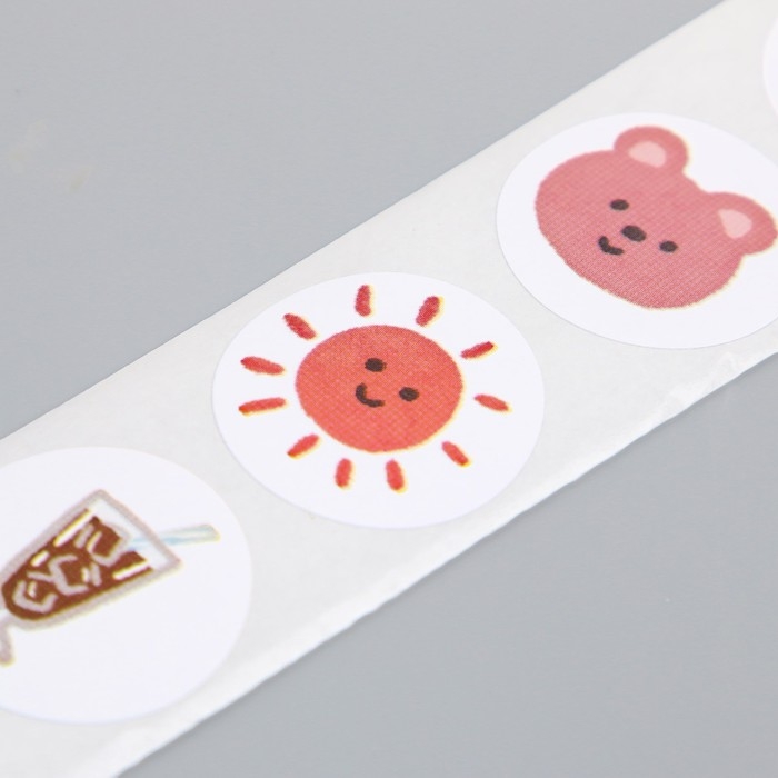 Наклейка бумага "Весёлые картинки" d=2,5 см 500 шт в рулоне 3х5,5х5,5 см
