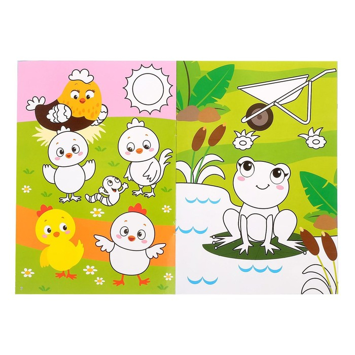 В наборе 2 раскраски и 8 разноцветных маркера на водной основе со стирателем на колпачке.