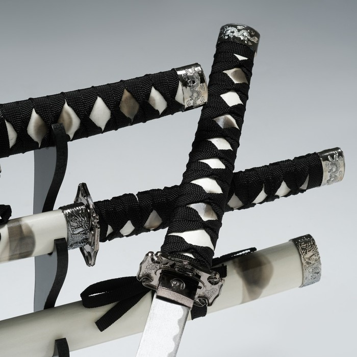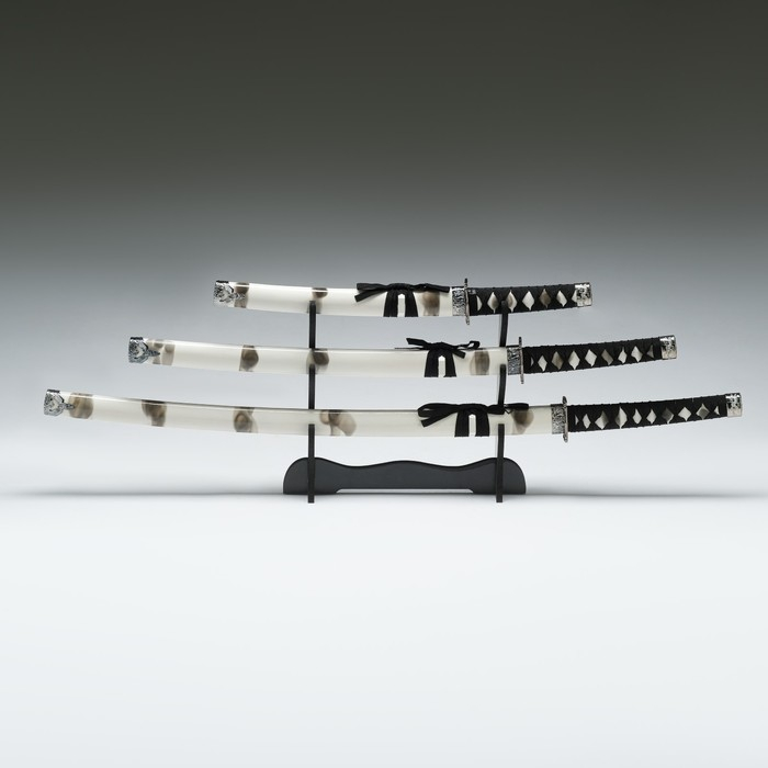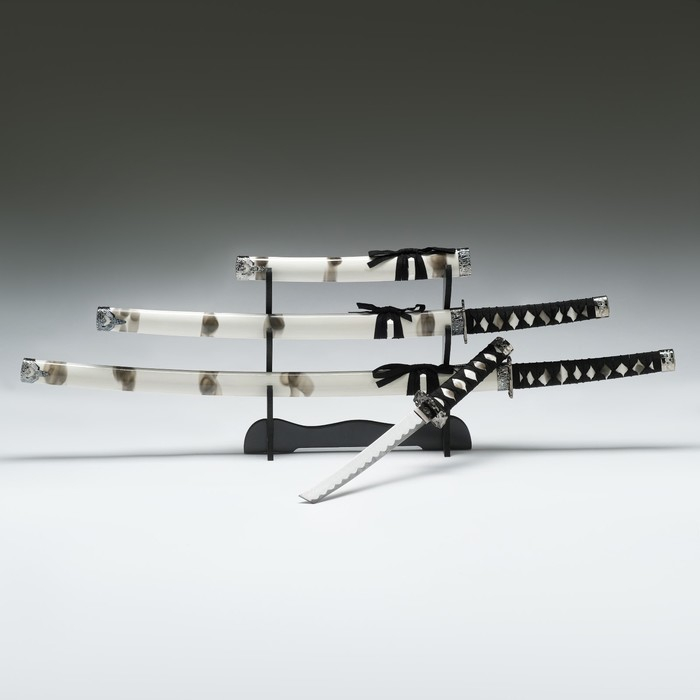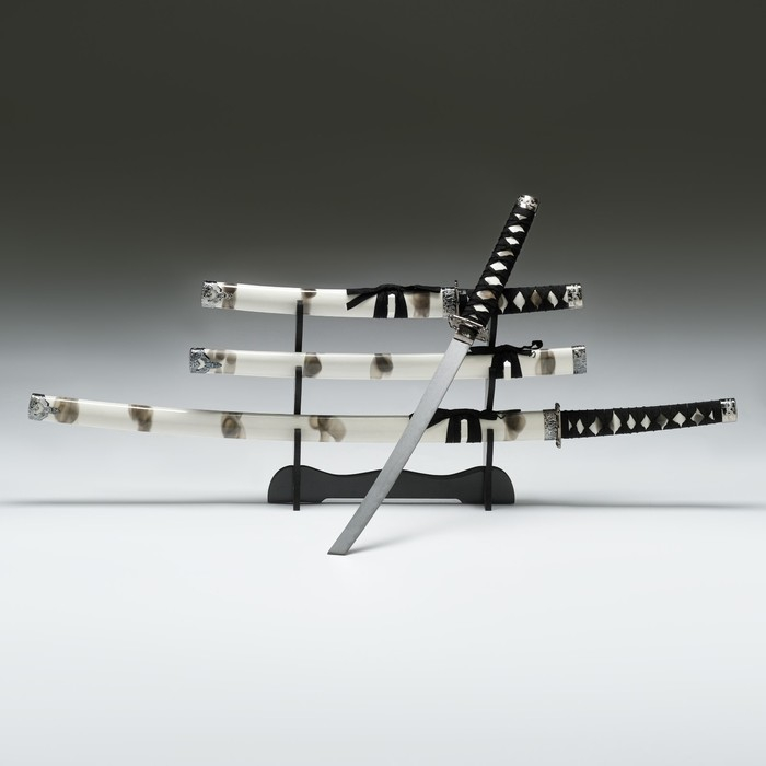 Сув. изделие катаны 3в1 на подставке, ножны дерево, белая дымка глянец 51/77/104см