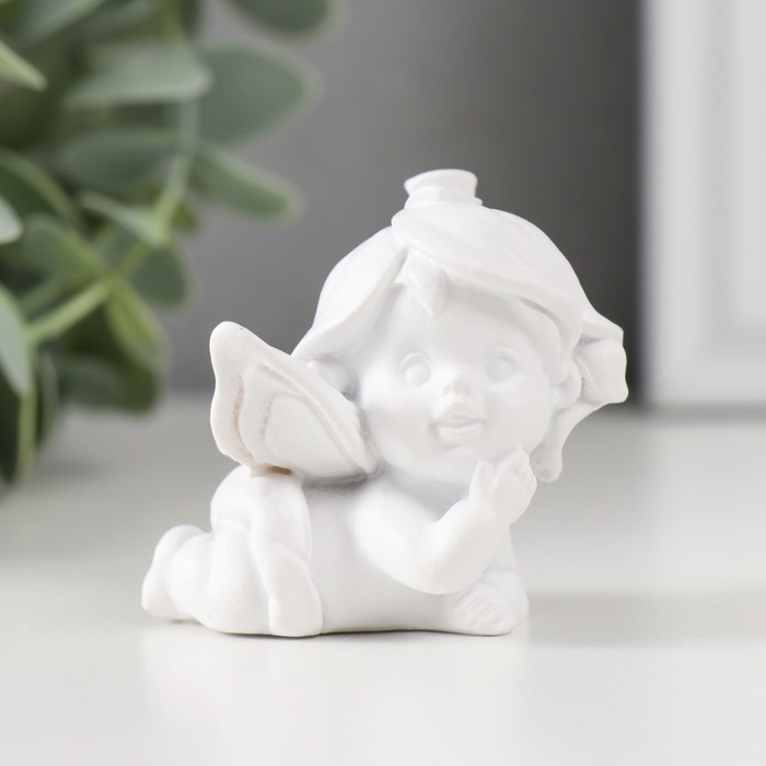 Сувенир полистоун "Малыш-ангел в шапочке из цветка" МИКС 5х4,5х5 см