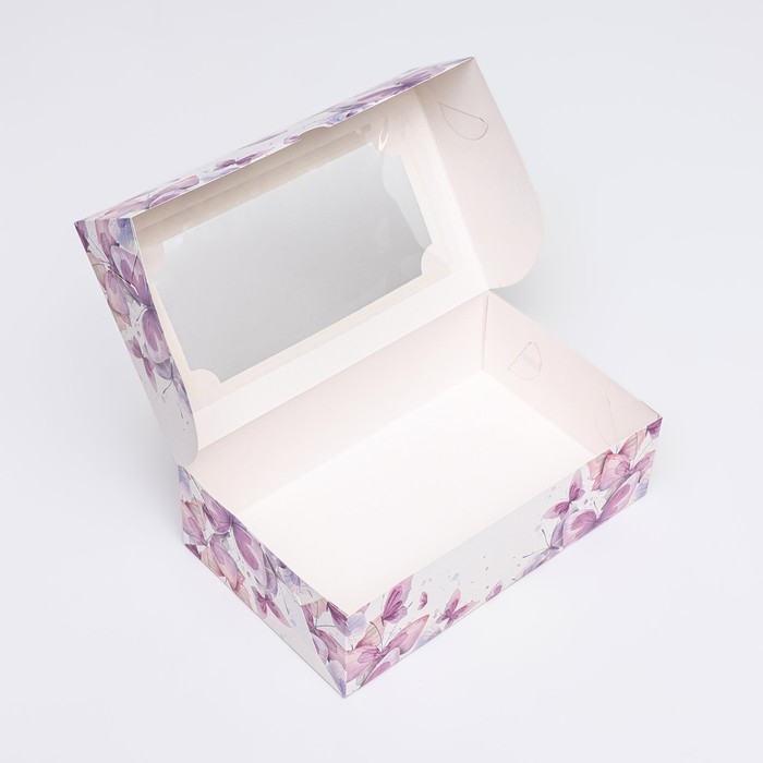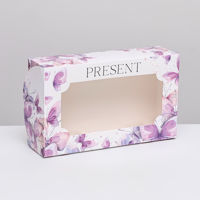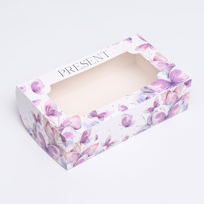 Коробка складная с окном под зефир "Пастельные бабочки", 25 х 15 х 7 см