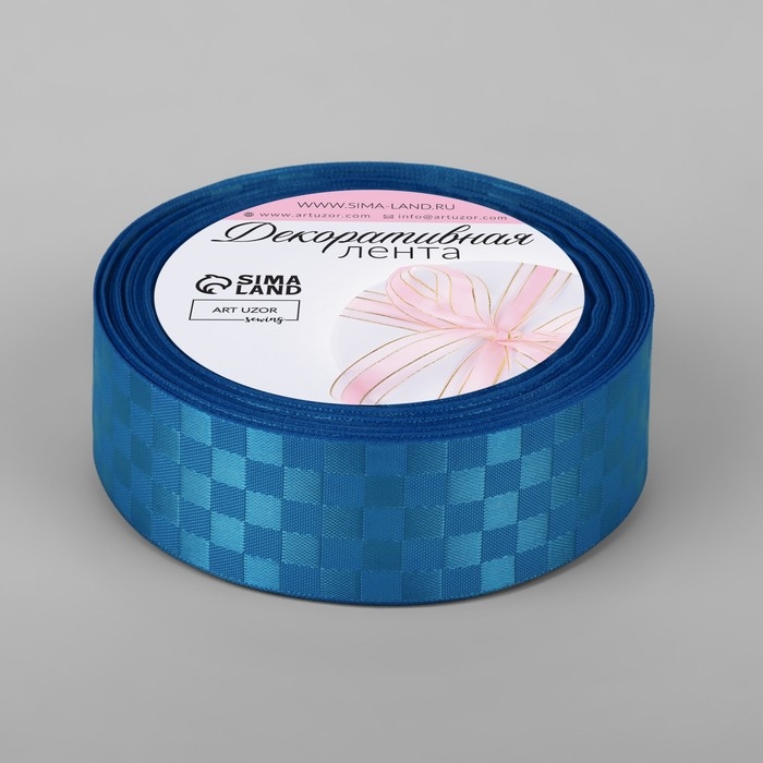 Лента декоративная «Квадраты», 25 мм × 9,1 ± 0,5 м, цвет ярко-голубой