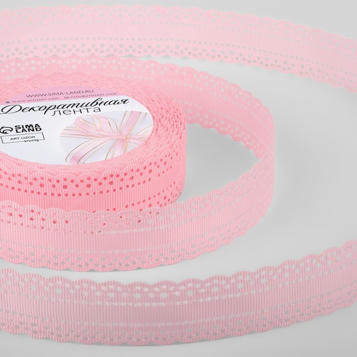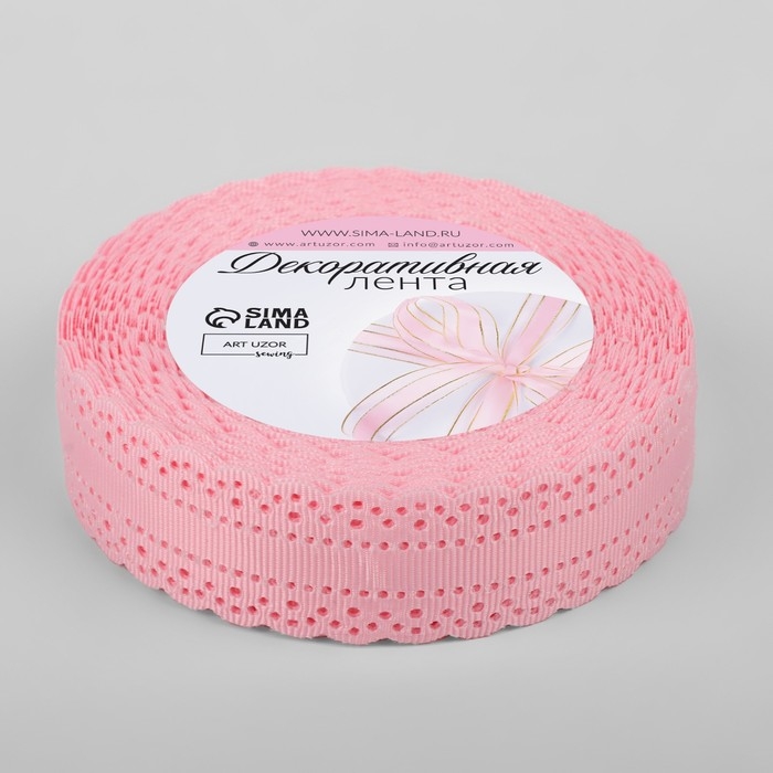 Лента декоративная, репсовая, с ажурным краем, 25 мм × 9,1 ± 0,5 м, цвет розовый