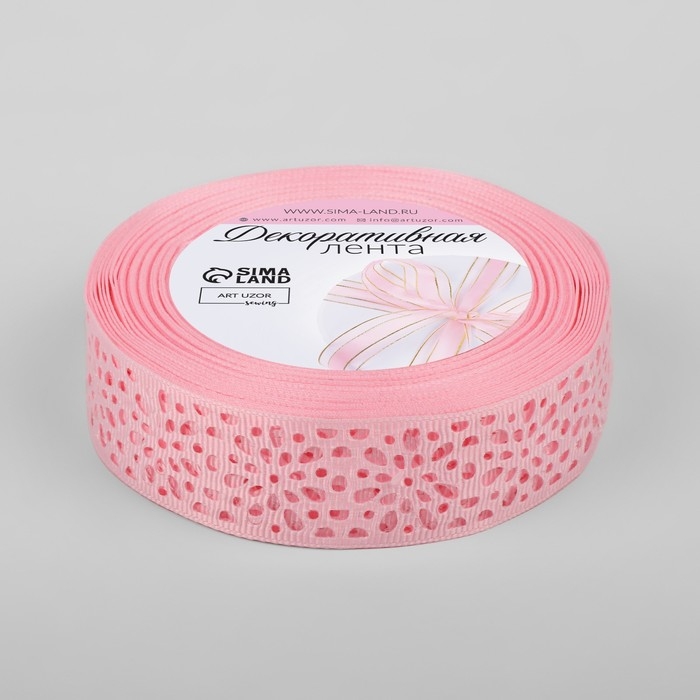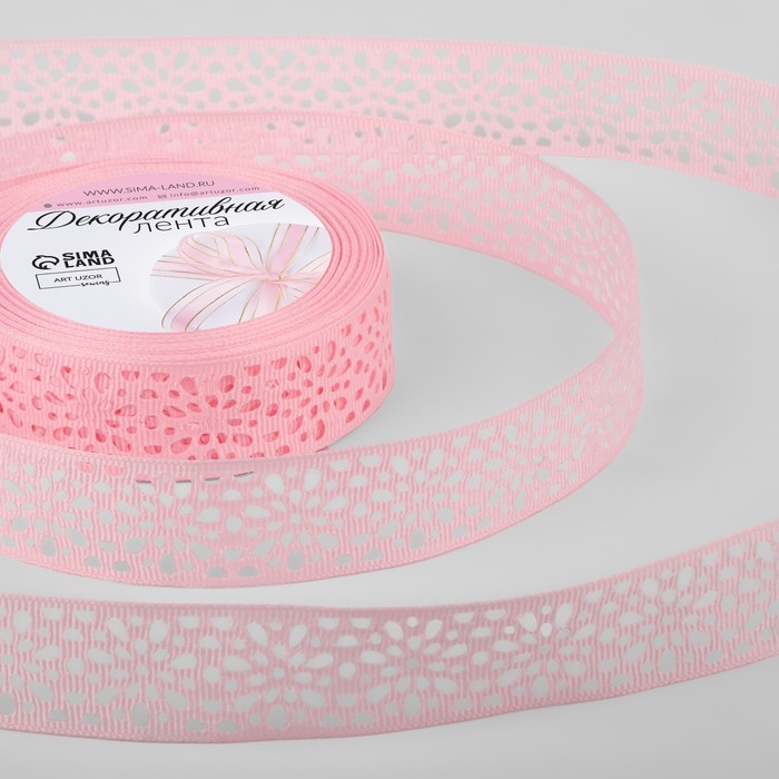 Лента декоративная, репсовая, ажурная, 25 мм × 9,1 ± 0,5 м, цвет розовый