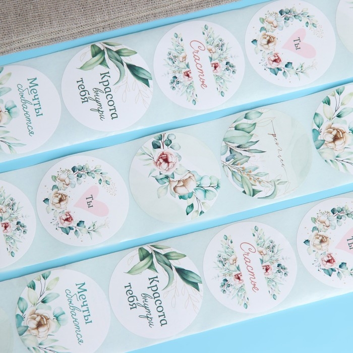 Наклейки для цветов и подарков "Красота внутри тебя", 4,4 х 4,4 см, 252 шт.