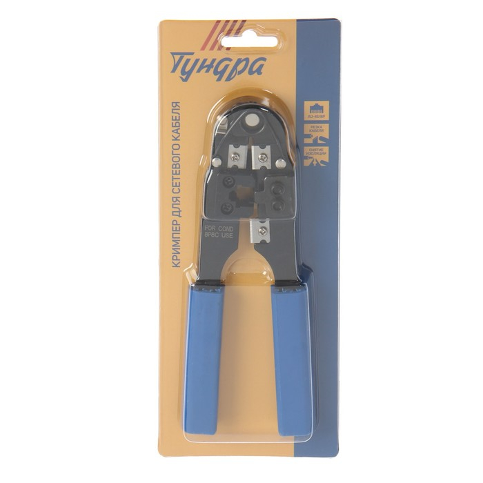 Кримпер ТУНДРА, для обжима компьютерных клемм RJ-45 8P, горизонтальный обжим