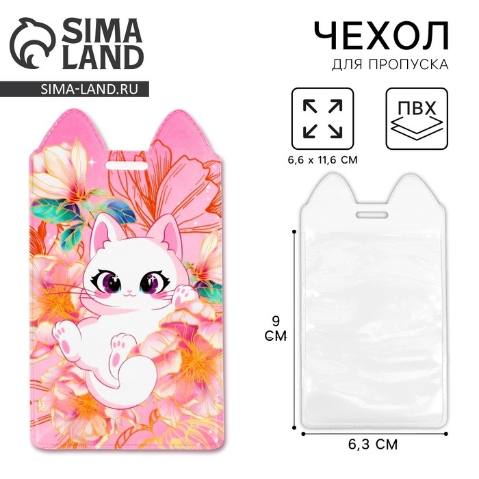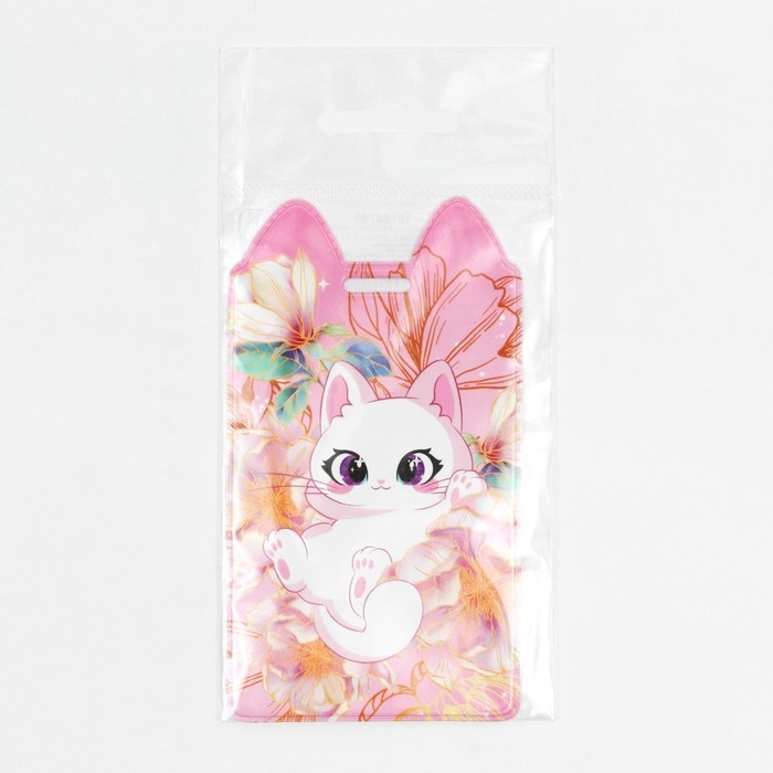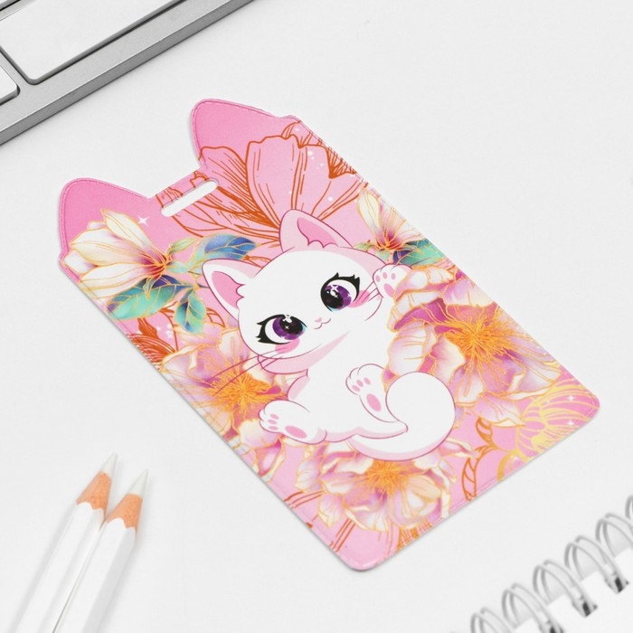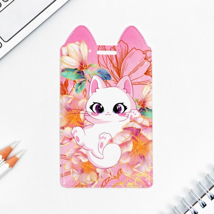 Чехол для бейджа «Котик в цветах», 11,6 х 6,6 см