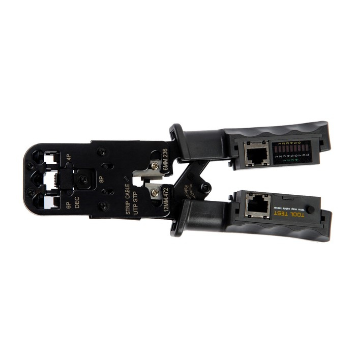 Кримпер-тестер ТУНДРА, с тестером кабеля, RJ-45 8P, RJ-12 6P, RJ-11 4P, вертикальный обжим