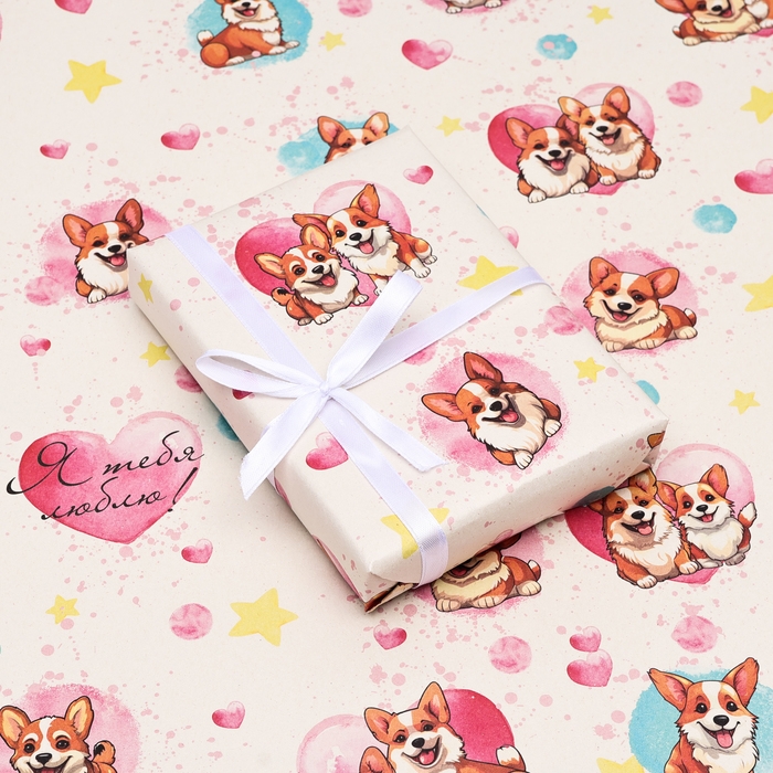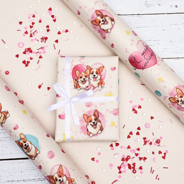 Бумага упаковочная, крафт "Я тебя люблю", 70 х 100 см, 1 лист