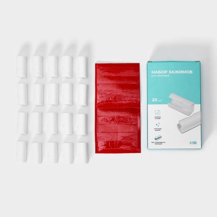Набор зажимов для проводов, самоклеящихся, 20 шт, цвет белый
