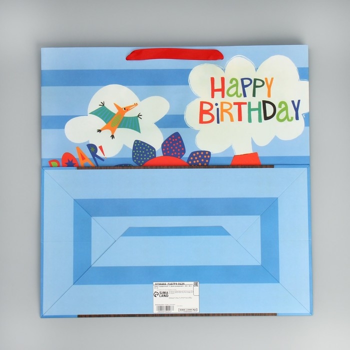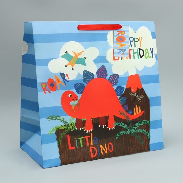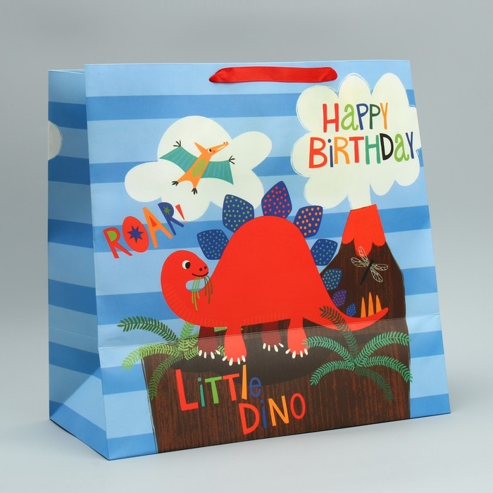 Пакет подарочный, упаковка, «Динозавр: С Днём рождения!», 38 х 38 х 21 см