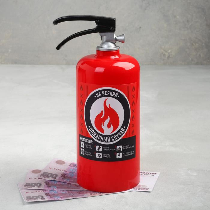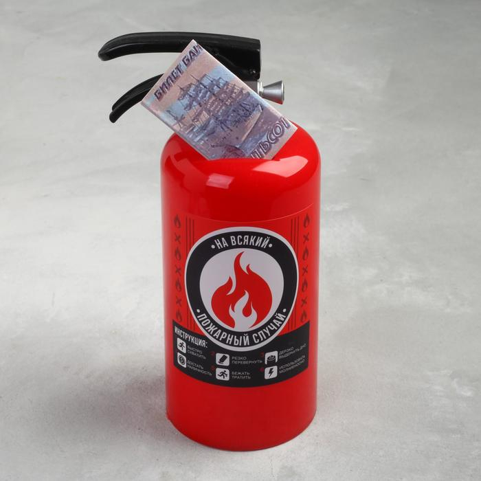 Копилка "На всякий", 20,5 х 9,5 х 8 см в виде огнетушителя сможет стать настоящим украшением интерьера или приятным подарком для ваших родных и близких! Вытащить содержимое копилки можно через отверстие снизу, которое закрывается пробкой. Копилка с оригинальным дизайном поднимет настроение каждому, кто ее увидит.