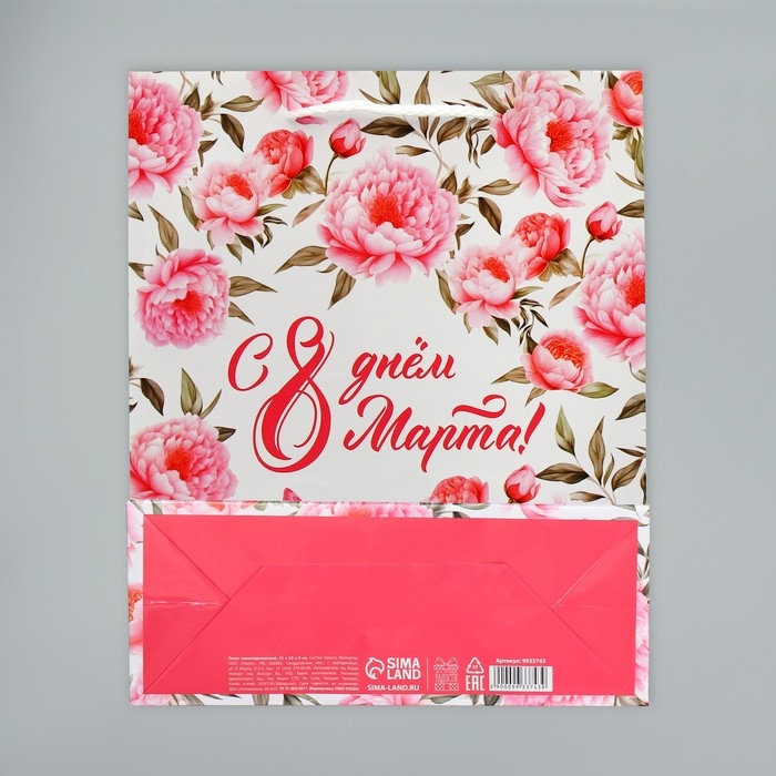 Пакет подарочный ламинированный, упаковка, «8 марта», ML 21 х 25 х 8 см