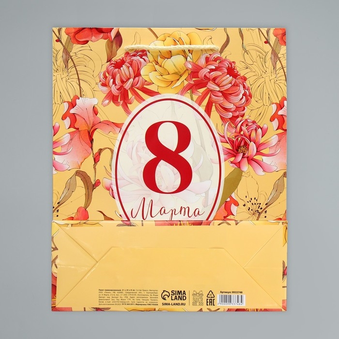Пакет подарочный ламинированный, упаковка, «8 марта», ML 21 х 25 х 8 см