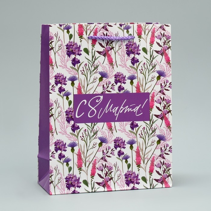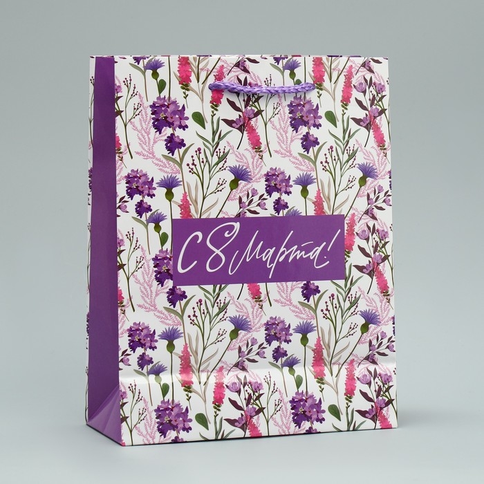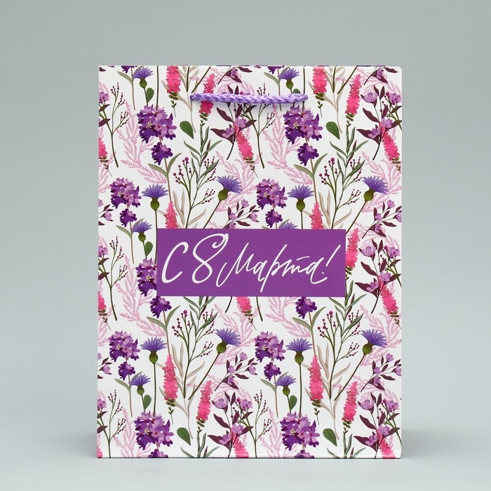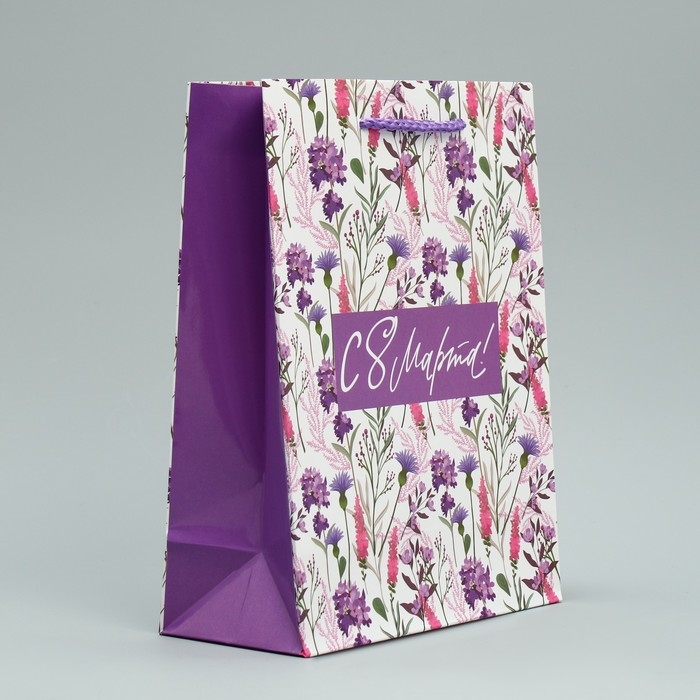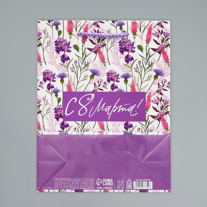Пакет подарочный ламинированный, упаковка, «С 8 марта!», MS 18 х 23 х 8 см