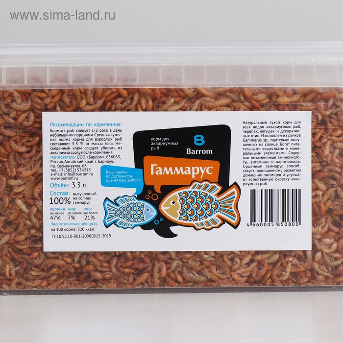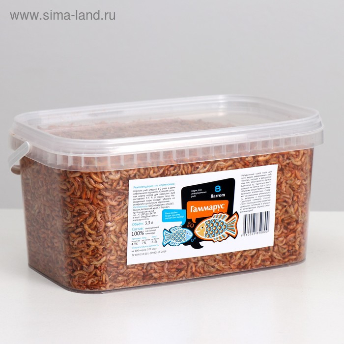 Корм для рыб и черепах Barrom Гаммарус, тушка, ведро 3,3 л