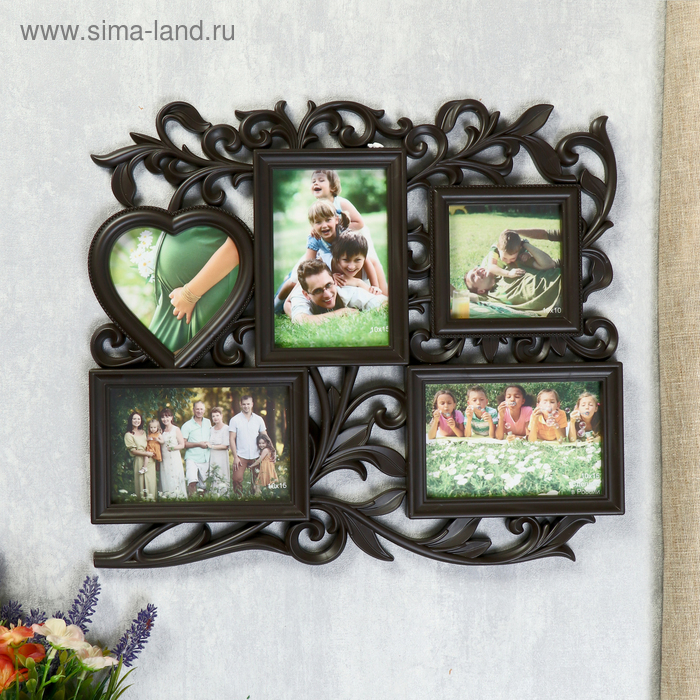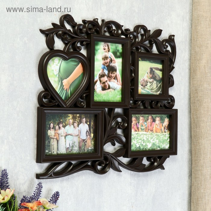 Фоторамка-коллаж "С сердцем" на 5 фото, венге (пластиковый экран)