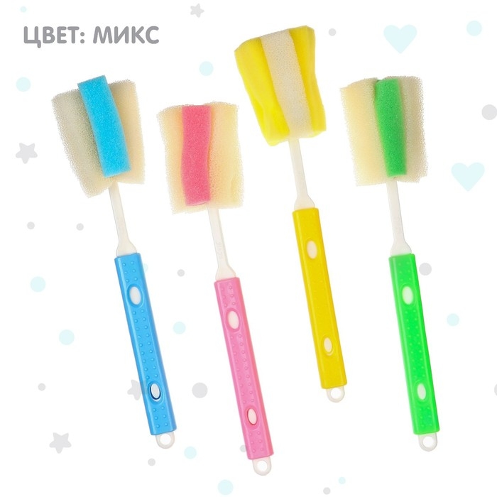 Ёршик для бутылочек, цвет МИКС, 33 см, губка, Крошка Я