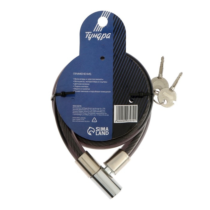 Замок навесной велосипедный ТУНДРА, 14х650 мм., 2 ключа , цвет черный