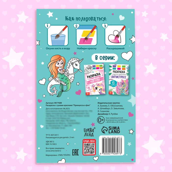 - На каждой страничке есть палитра с 6 цветами сухих красок.