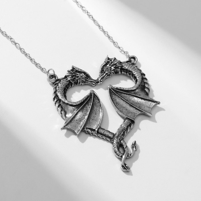 Кулон «Сердце» с дракончиками, цвет чернёное серебро, 45 см